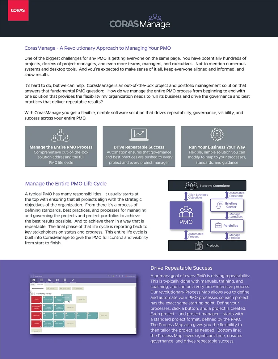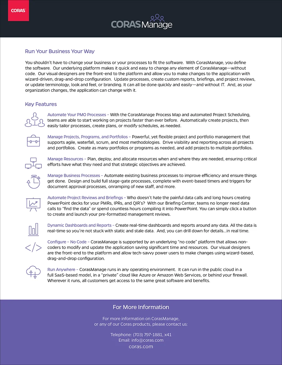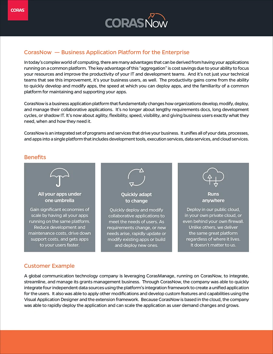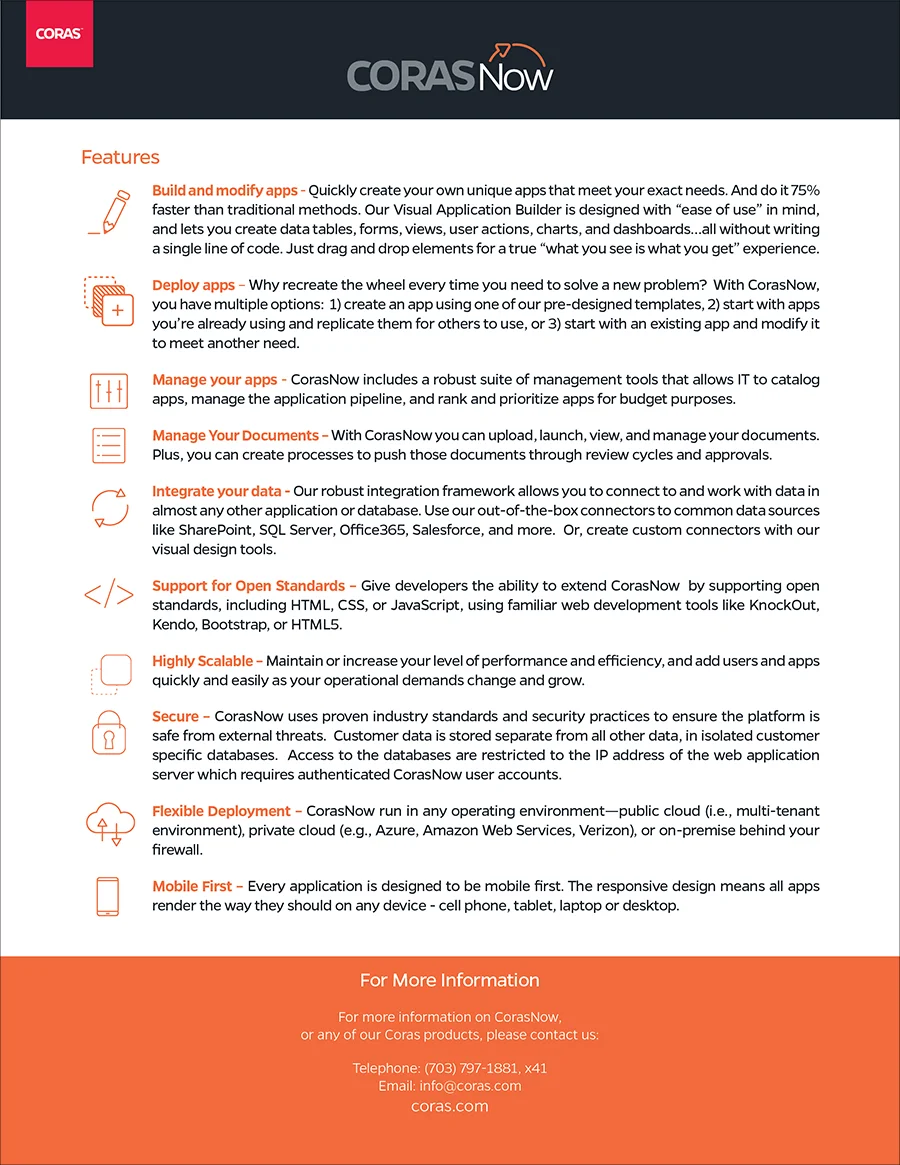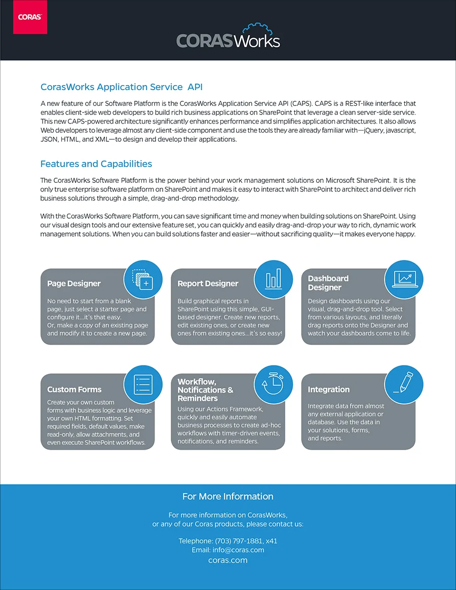 Marketing data sheets for Coras™ products.